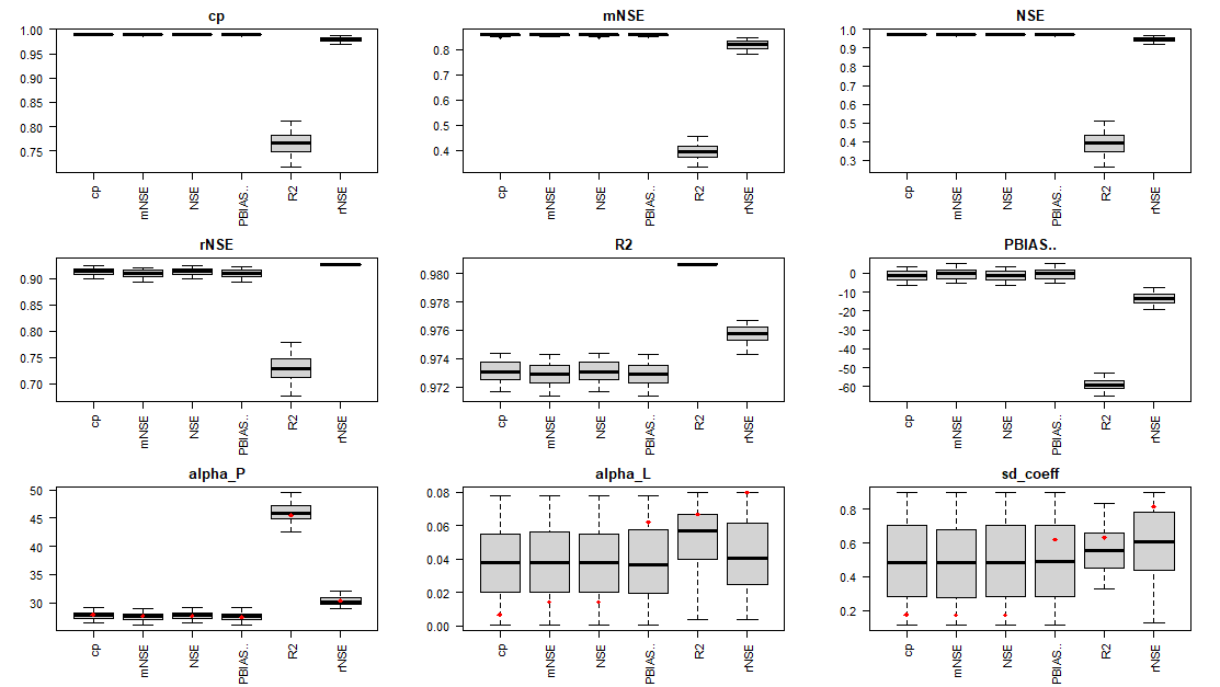 Choosing the right goodness-of-fit metric to select the best set of parameters for a model largely depends on the overall study scope, the area of interest (e.g. high or low load, upper or lower catchment area), and the available observation dataset (size and quality). The library includes a series of functions to examine the calibration results and help select the most suitable set of parameters.